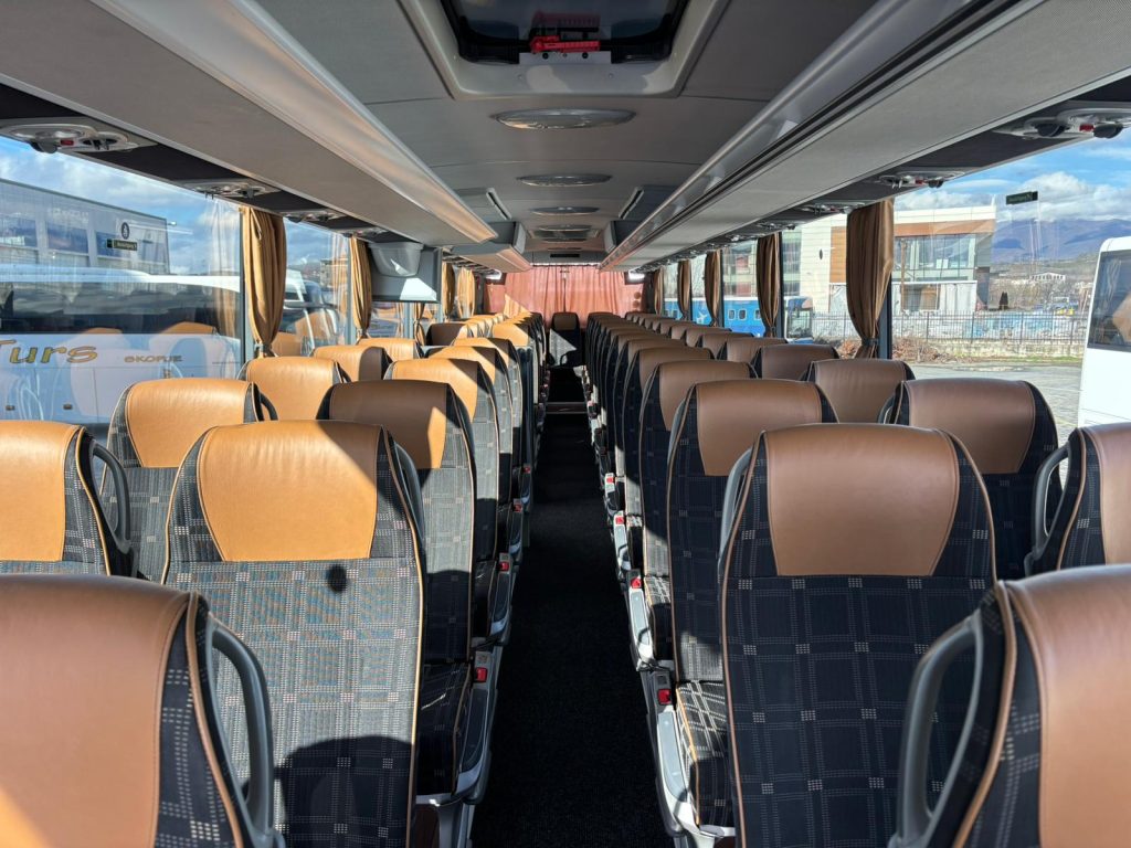 What we offer: Air conditioner, refrigerator, adjustable seats COMFORT CLASS with armrests, footrests, folding table, individual lighting, microphone, safety belts