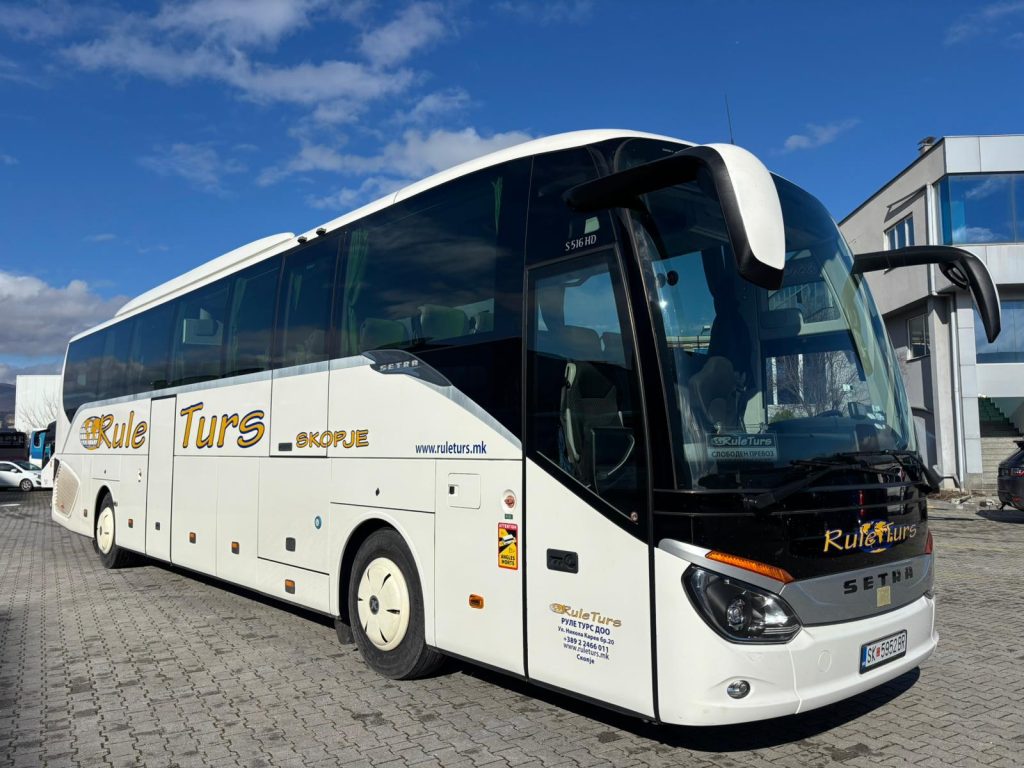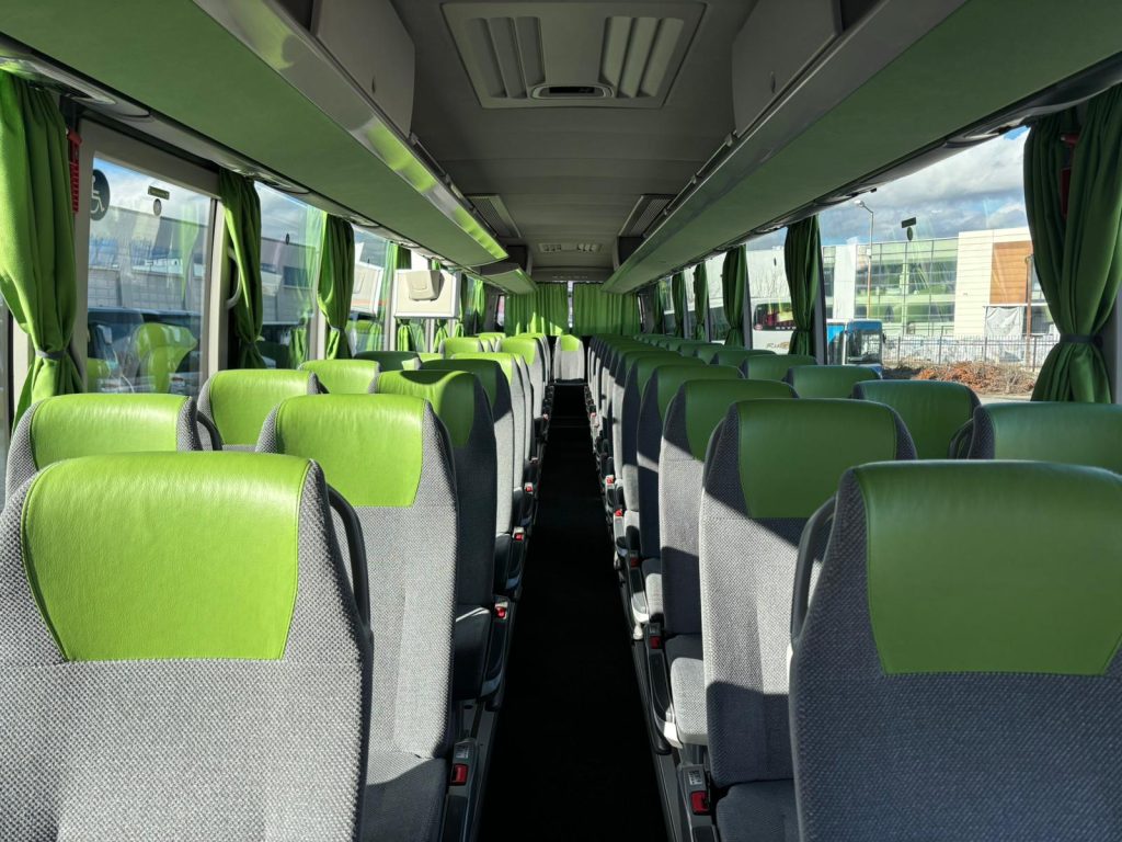 What we offer: Air conditioner, refrigerator, adjustable seats COMFORT CLASS with armrests, footrests, folding table, individual lighting, microphone, safety belts