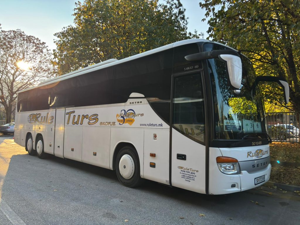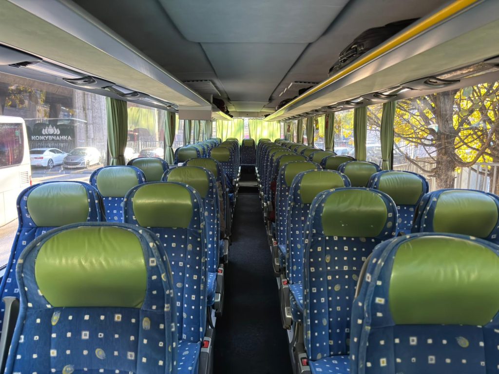 What we offer: Air conditioner, refrigerator, adjustable seats COMFORT CLASS with armrests, footrests, folding table, individual lighting, microphone, safety belts